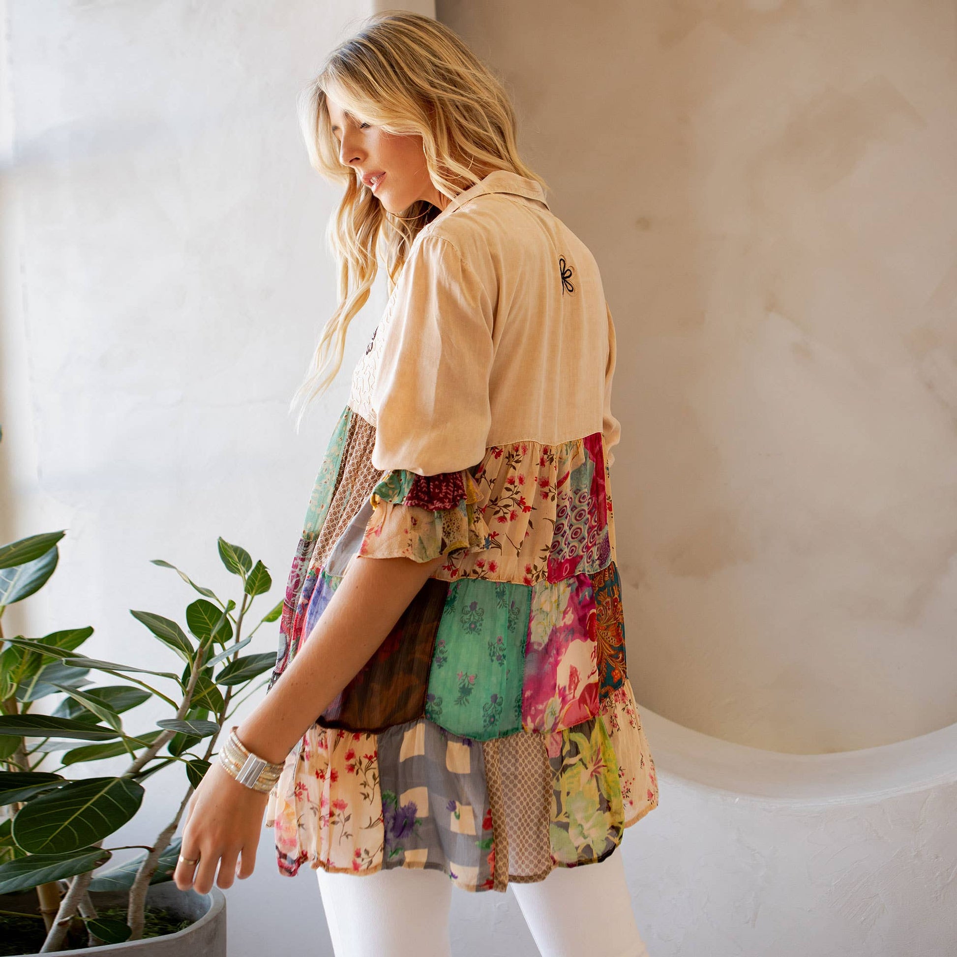 • Sleeves: 3/4 sleeves with gentle ruffles