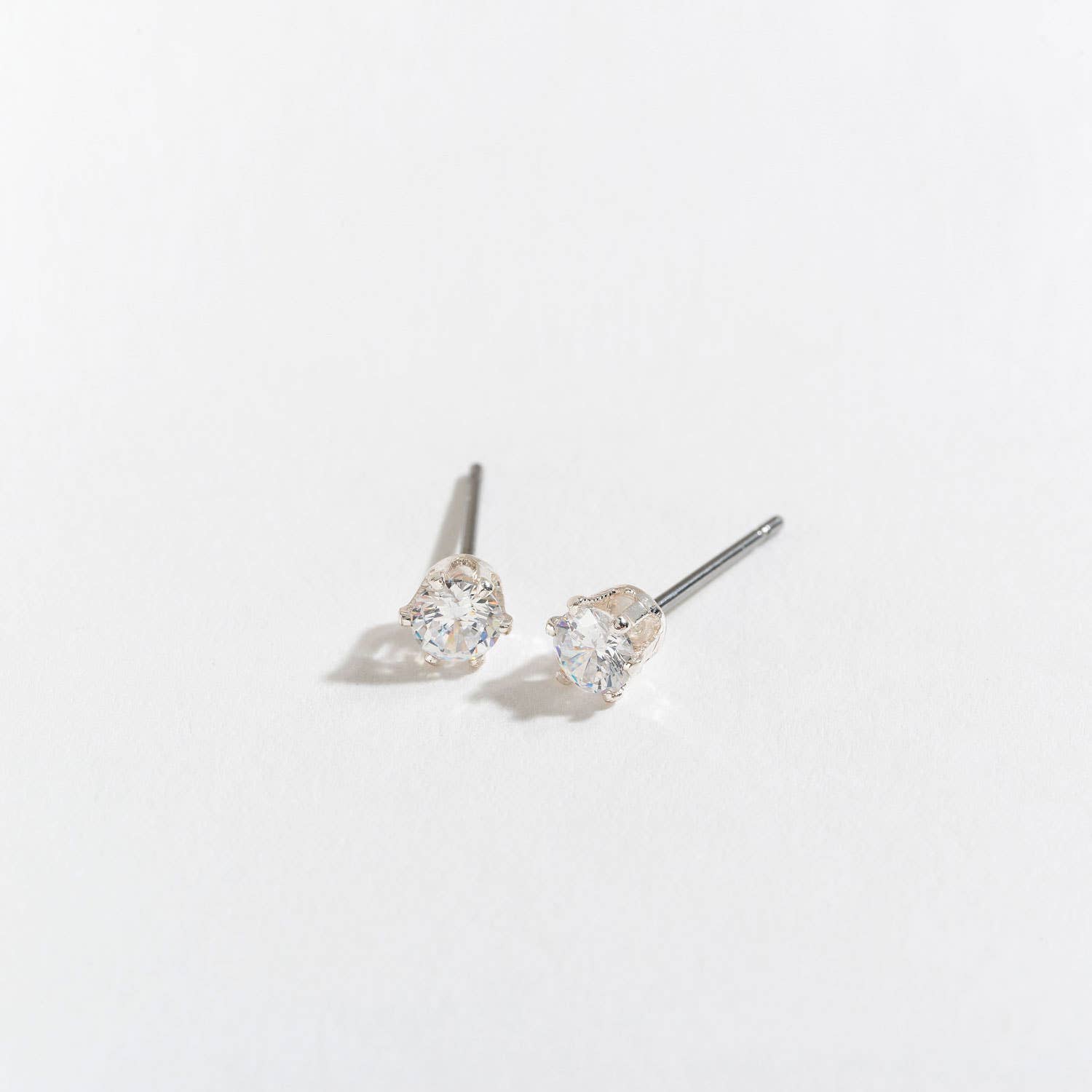 4mm Silver Cubic Zirconia Ear Sense Stud Earrings