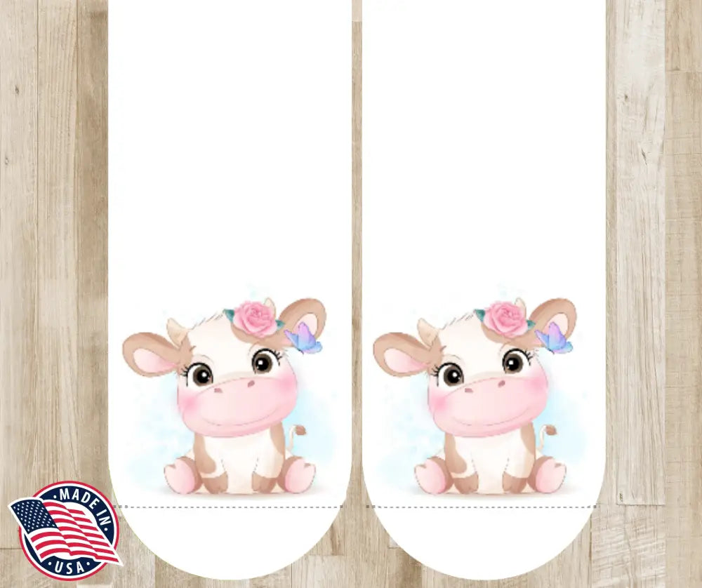 These adorable socks fit an adult size 6-12. Made from 98% Polyester, 2% Spandex. These are no show socks.