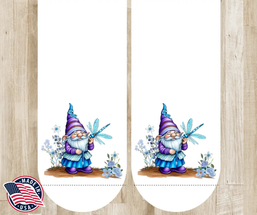 These adorable socks fit an adult size 6-12. Made from 98% Polyester, 2% Spandex. These are no show socks.