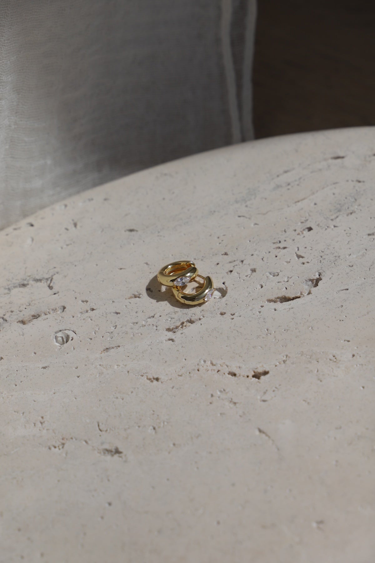 Meet the hoops every it-girl has on repeat. The Aurum Hoops are bold, thick huggies with just the right amount of edge—elevated by a sleek marquise-cut CZ that catches the light (and compliments). Whether you're styling a slick bun or tousled waves, these stunners add instant polish. A statement without the fuss—aka, your new go-to.
