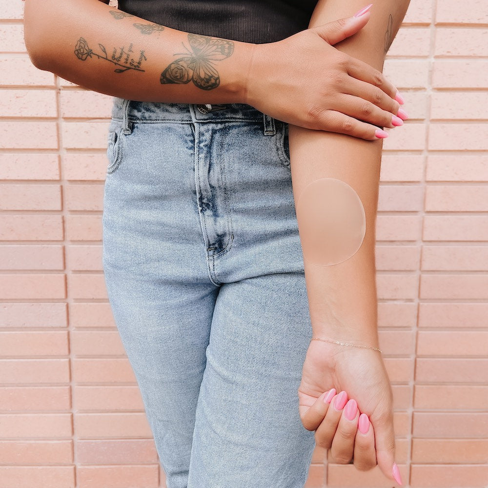 Please note: Darker skin tones may lighten or discolor with adhesive use. Do not use it on open wounds or cuts, skin disorders, sunburned skin, or depigmentation. If you have skin or adhesive sensitivities, wear with caution. Discontinue use if skin irritation occurs. If concerned, consult a physician.