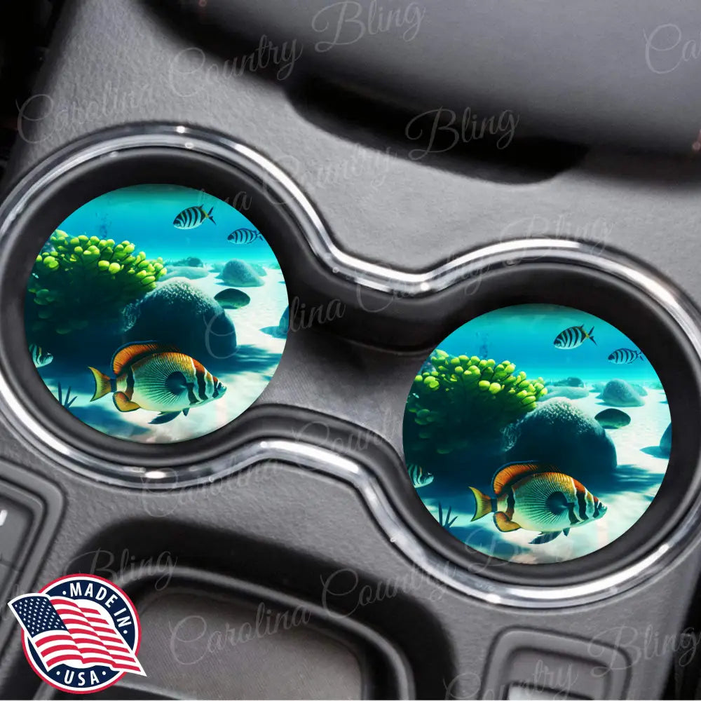 Sold as set of two car coasters.