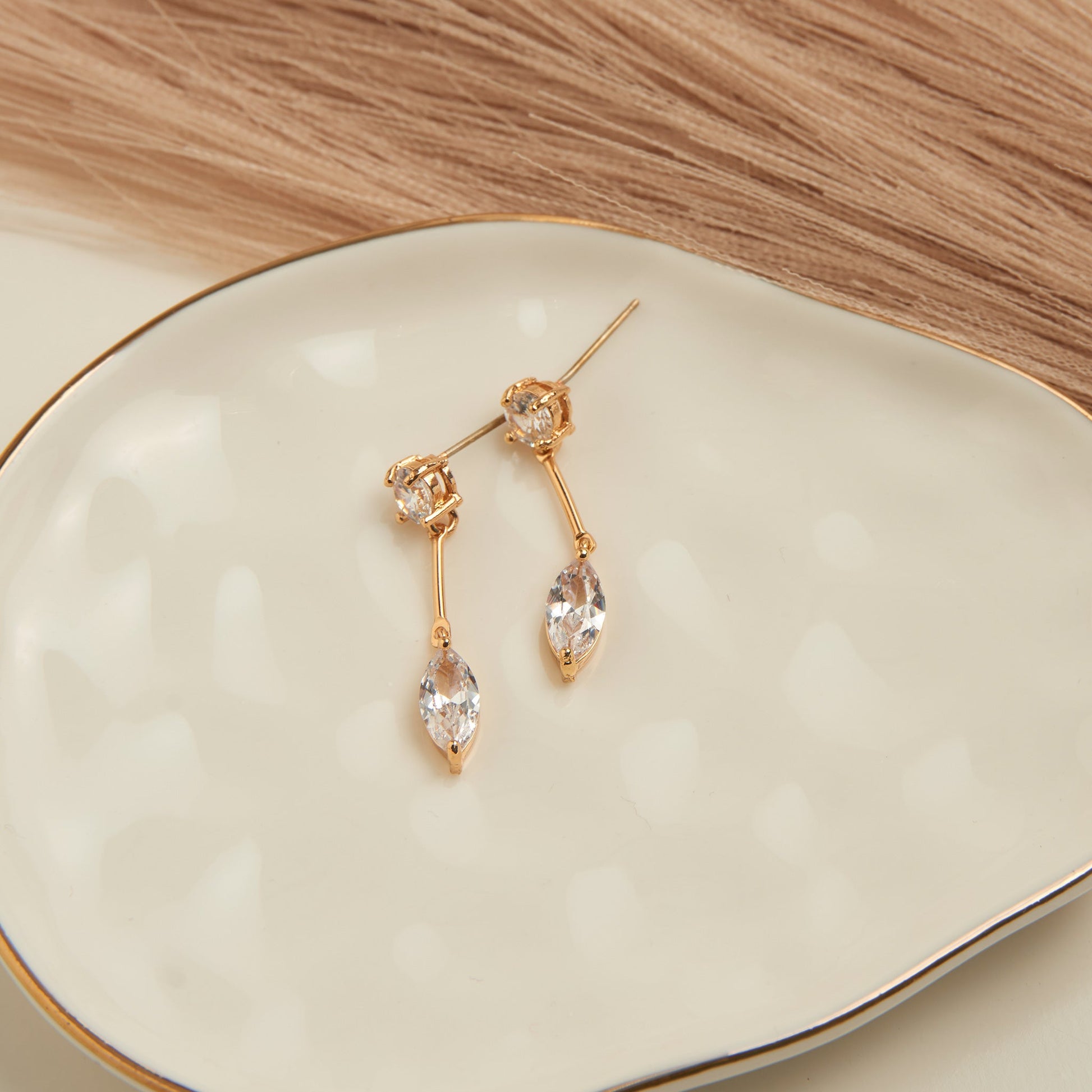 The Dazzler Long Post Cubic Zirconia Drop Earrings deliver refined sparkle with a modern silhouette that adds effortless elegance to any collection. Featuring a brilliant round-cut stud with a sleek bar drop ending in a marquise-cut cubic zirconia, these earrings offer graceful movement and eye-catching shine. Available in both gold and silver finishes, they’re lightweight, hypoallergenic, and comfortable enough for all-day wear—making them ideal for shoppers seeking elevated everyday jewelry or a sophisticated finishing touch for evening looks. With their timeless design and strong customer appeal, they’re a perfect addition to bridal assortments, gift displays, or fashion-forward showcases.