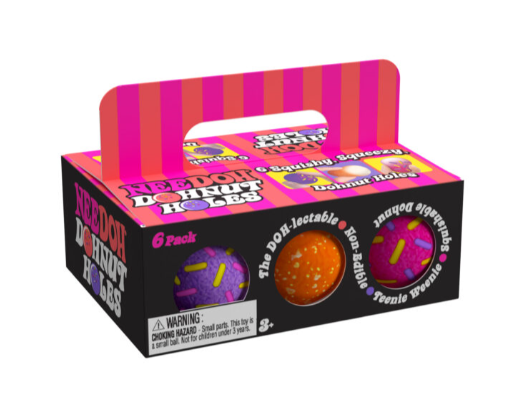 Tiny doughnuts, big relief. These pocket-sized stress balls deliver satisfying squish therapy in a fun, doughnut-shaped design. Each set includes six teenie NeeDoh balls filled with cool cream dough that responds to every squeeze, pinch, and poke. Perfect for fidgeting at your desk, calming anxiety on the go, or sharing with friends. Portable sensory fun that fits in your pocket and works wonders for stress relief.