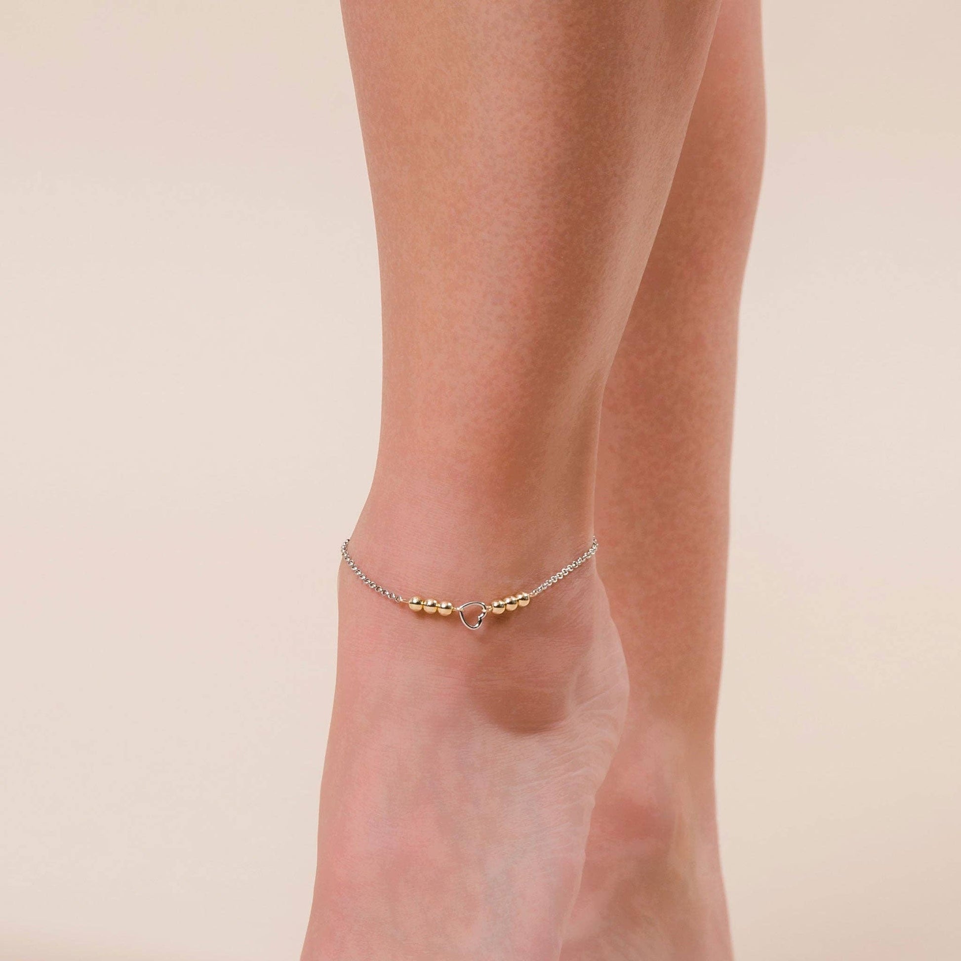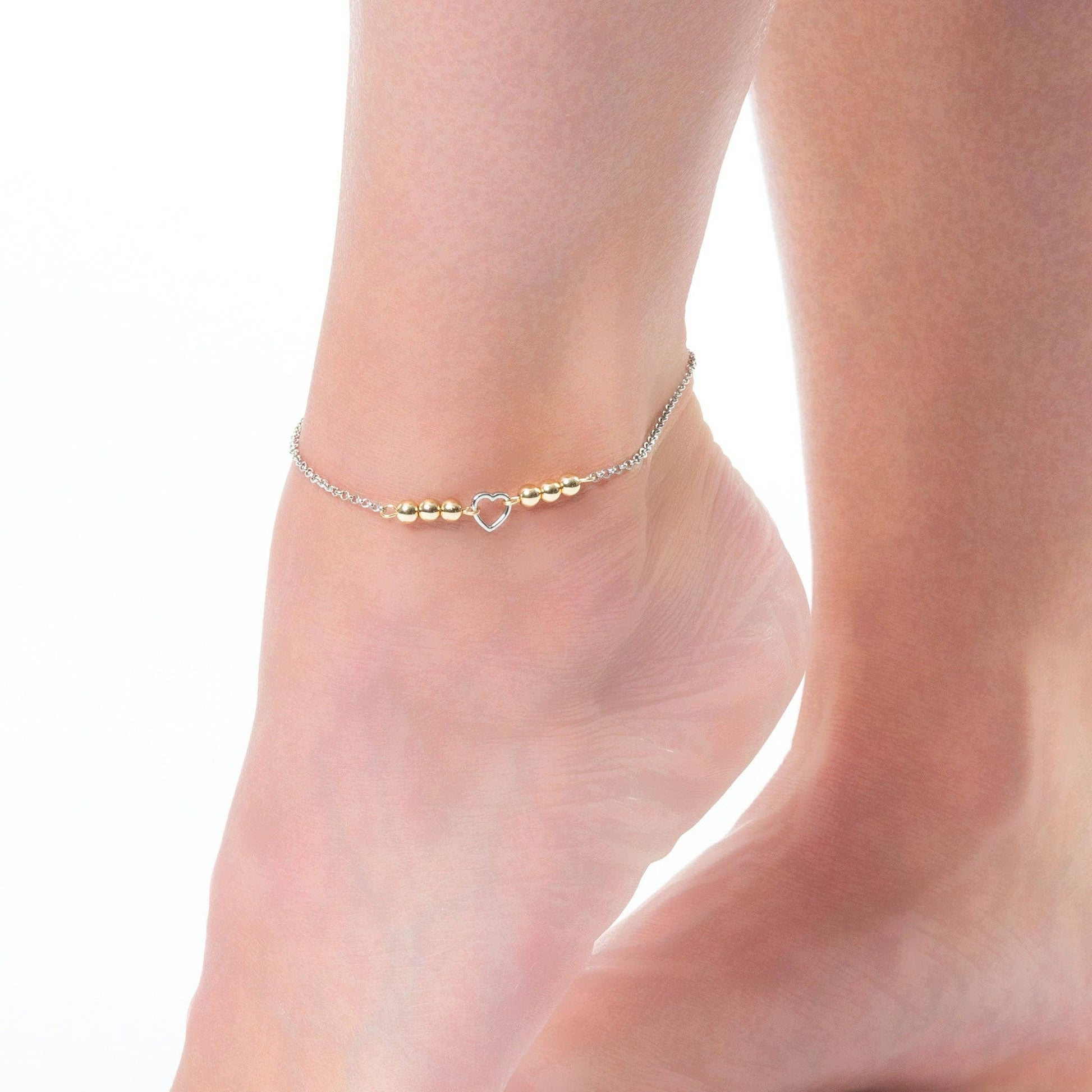 A perfect summer accessory! Featuring a classic silver chain with delicate golden beads and heart charm, the Alexis Beaded Heart Anklet completes any look.