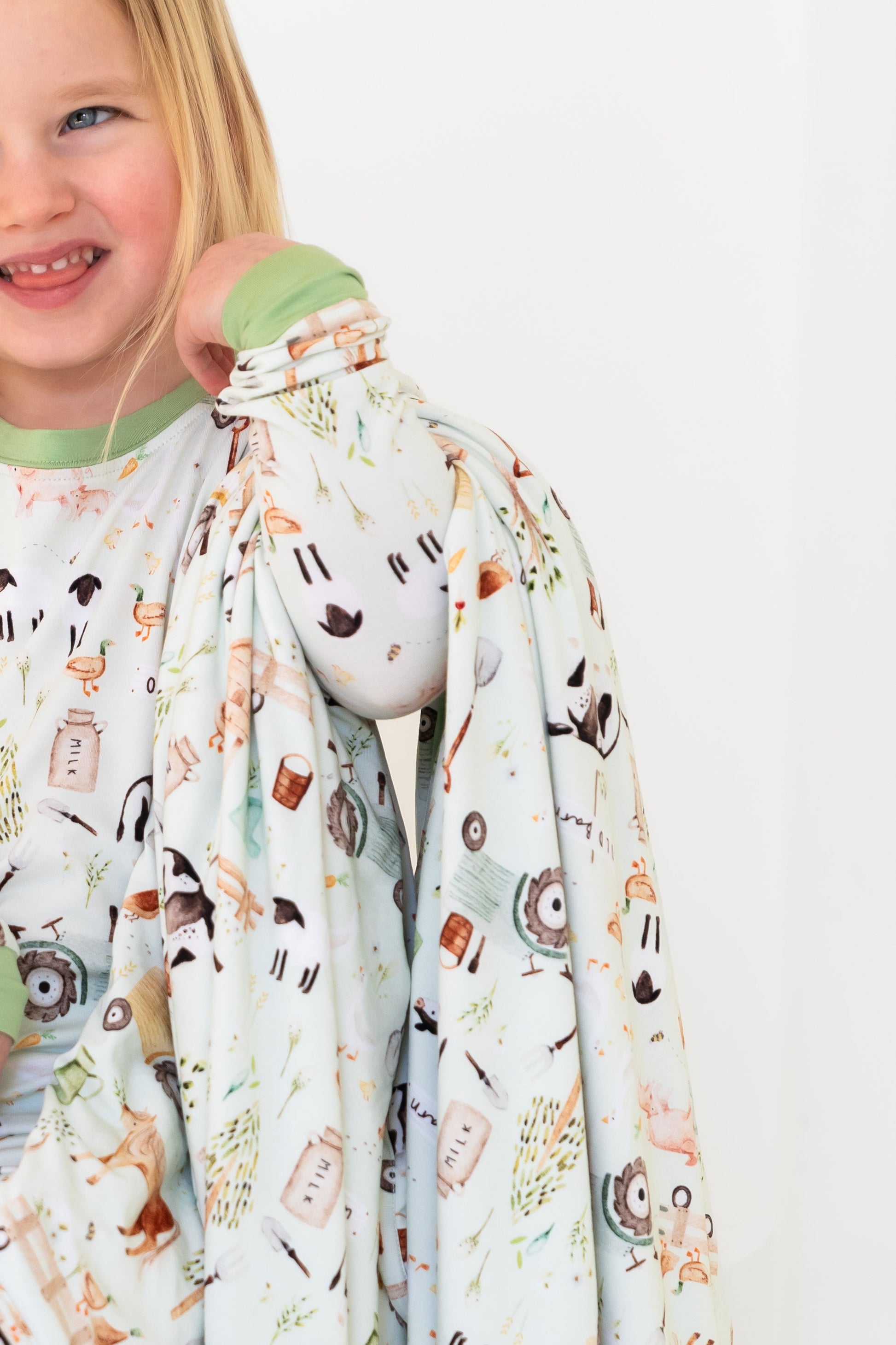 *The American Academy of Pediatrics (AAP) recommends keeping soft objects and loose bedding out of the sleeping area for at least the first 12 months. Because of this, blankets should not be left unattended in cribs for children under 1 year.