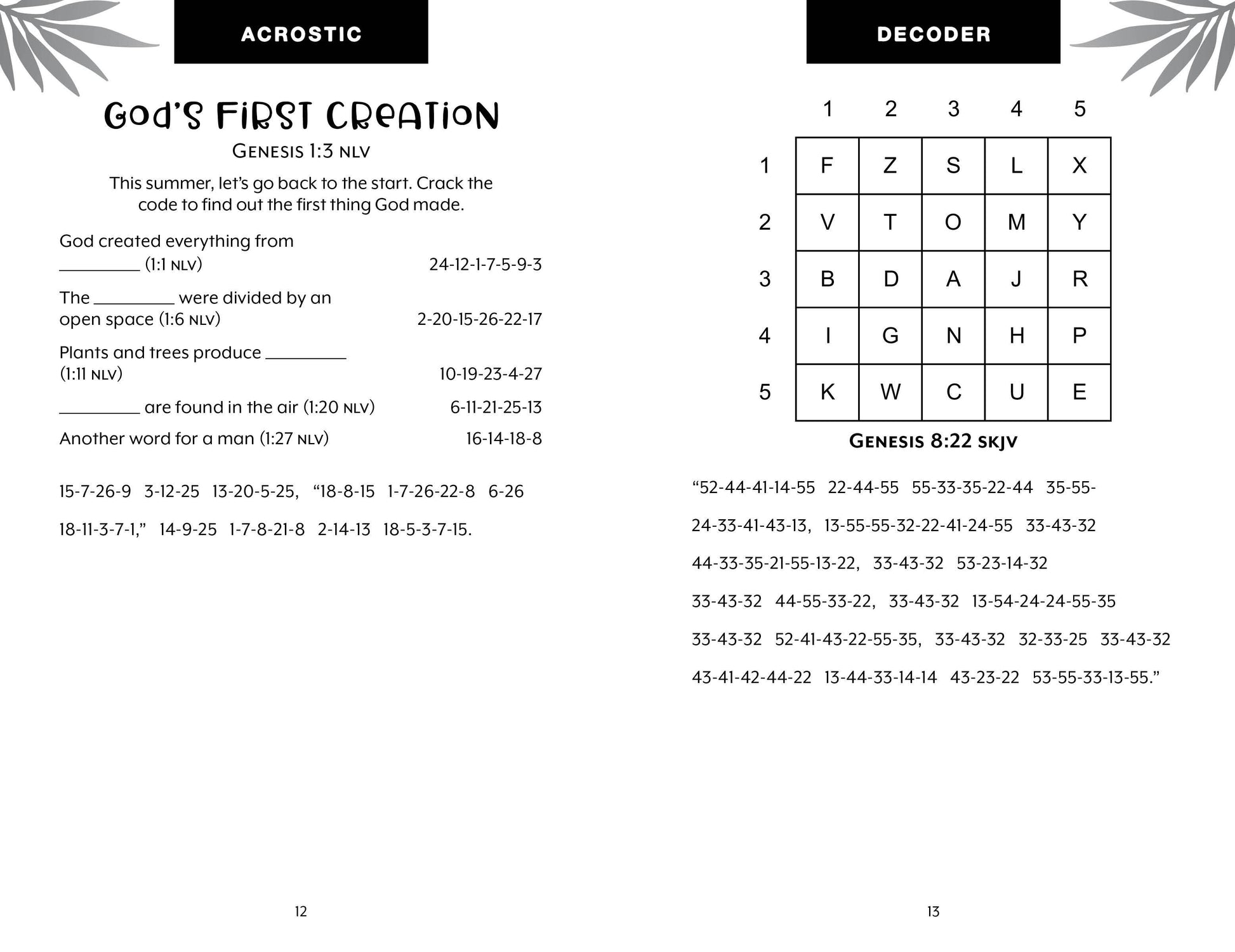 Here are scores of crosswords, word searches, acrostics, word scrambles, and more, each one based on a Bible passage or theme.