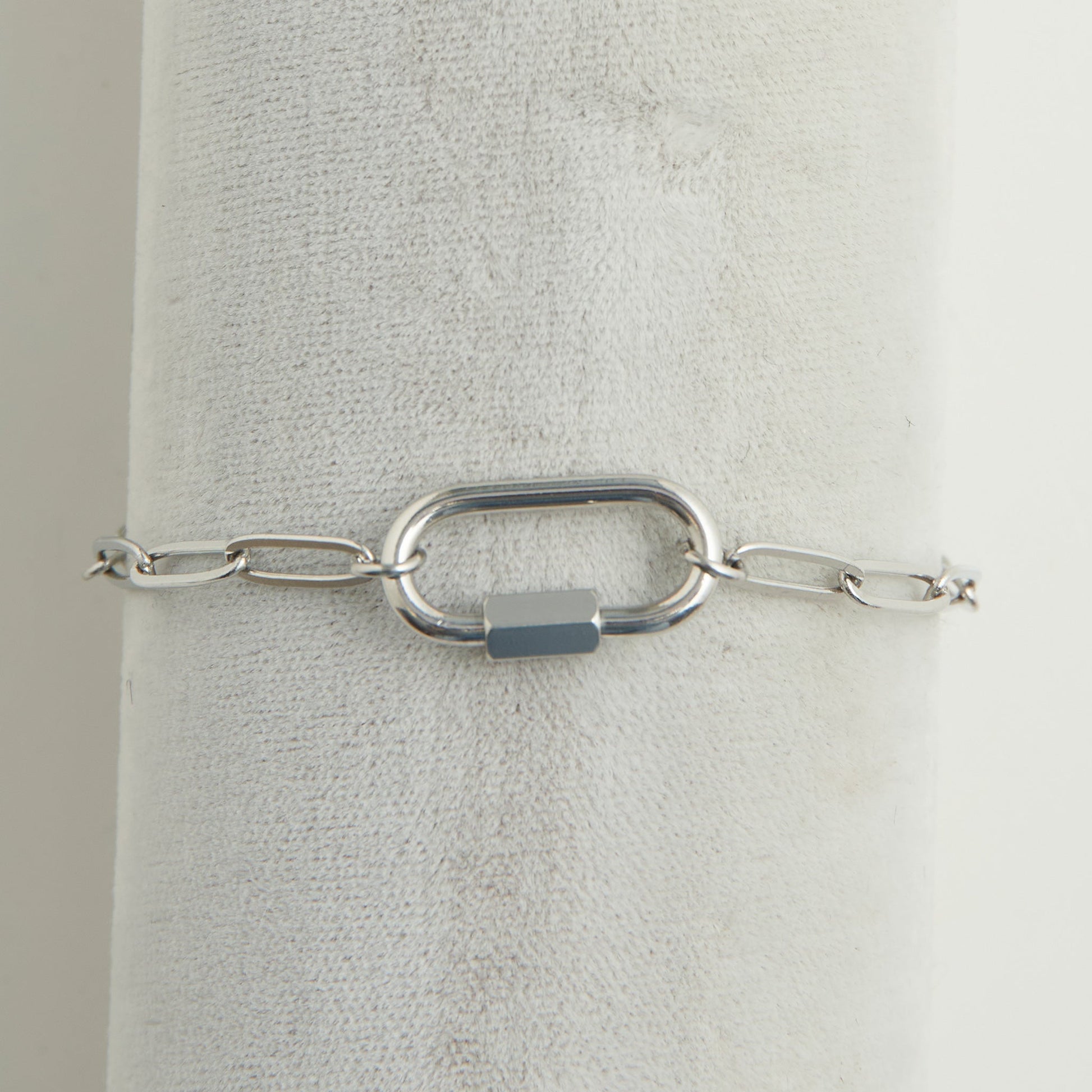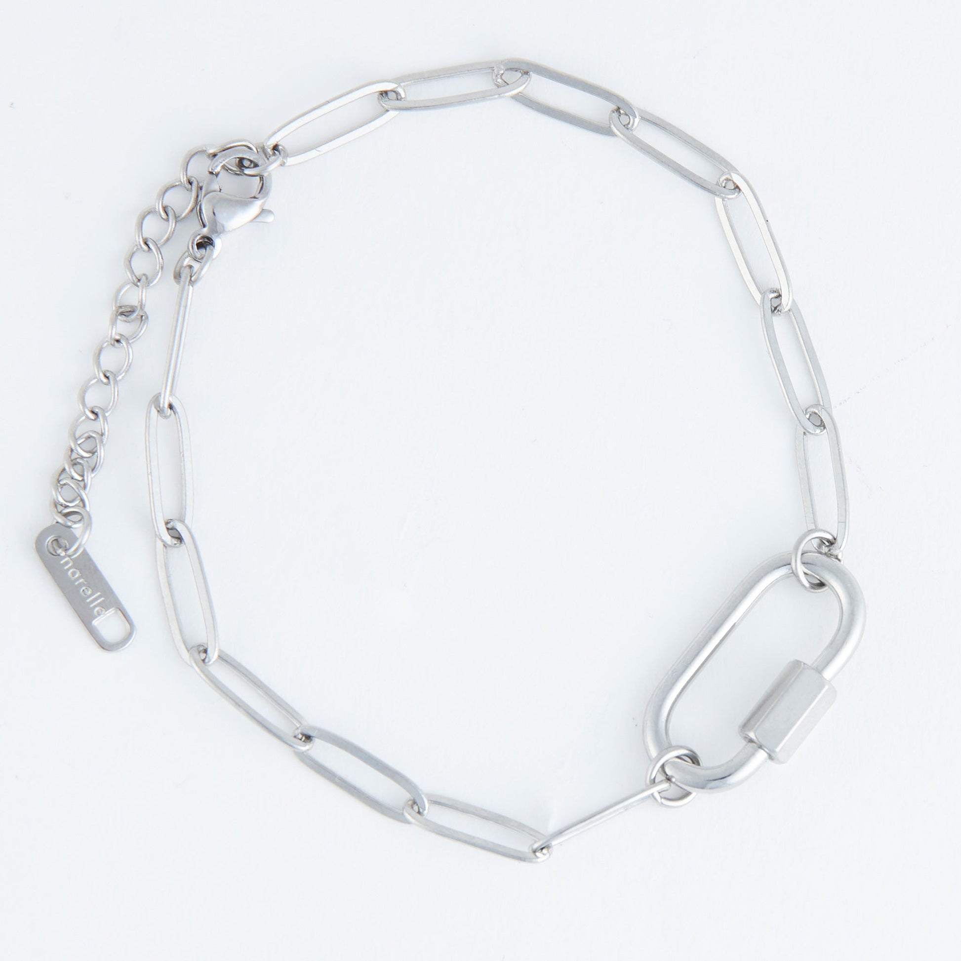 Embrace timeless elegance and modern romance with the Narelle Waterproof Paperclip Chain Carabiner Bracelet. Expertly crafted and exquisitely designed, this bracelet gracefully combines sophistication and everyday charm.