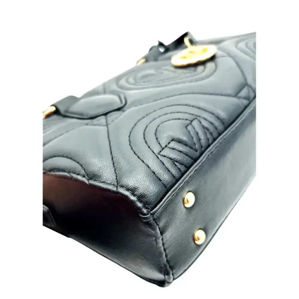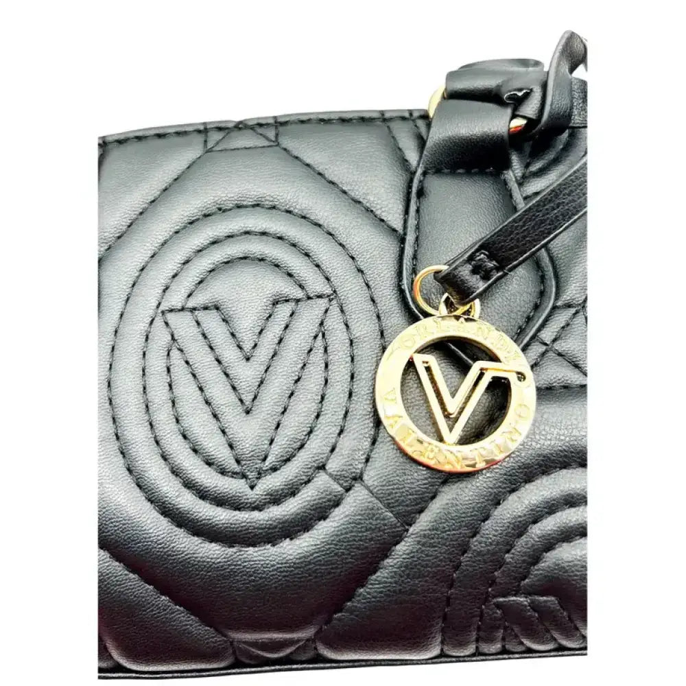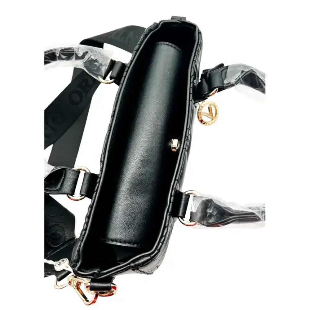 This Valentino Orlandi mini quilted crossbody bag is a stylish and versatile accessory for any occasion. With double handles, this crossbody bag is perfect for travel, casual outings, or business meetings. The black faux leather exterior features stitching accents and a monogram and stitches pattern, giving it a designer look.