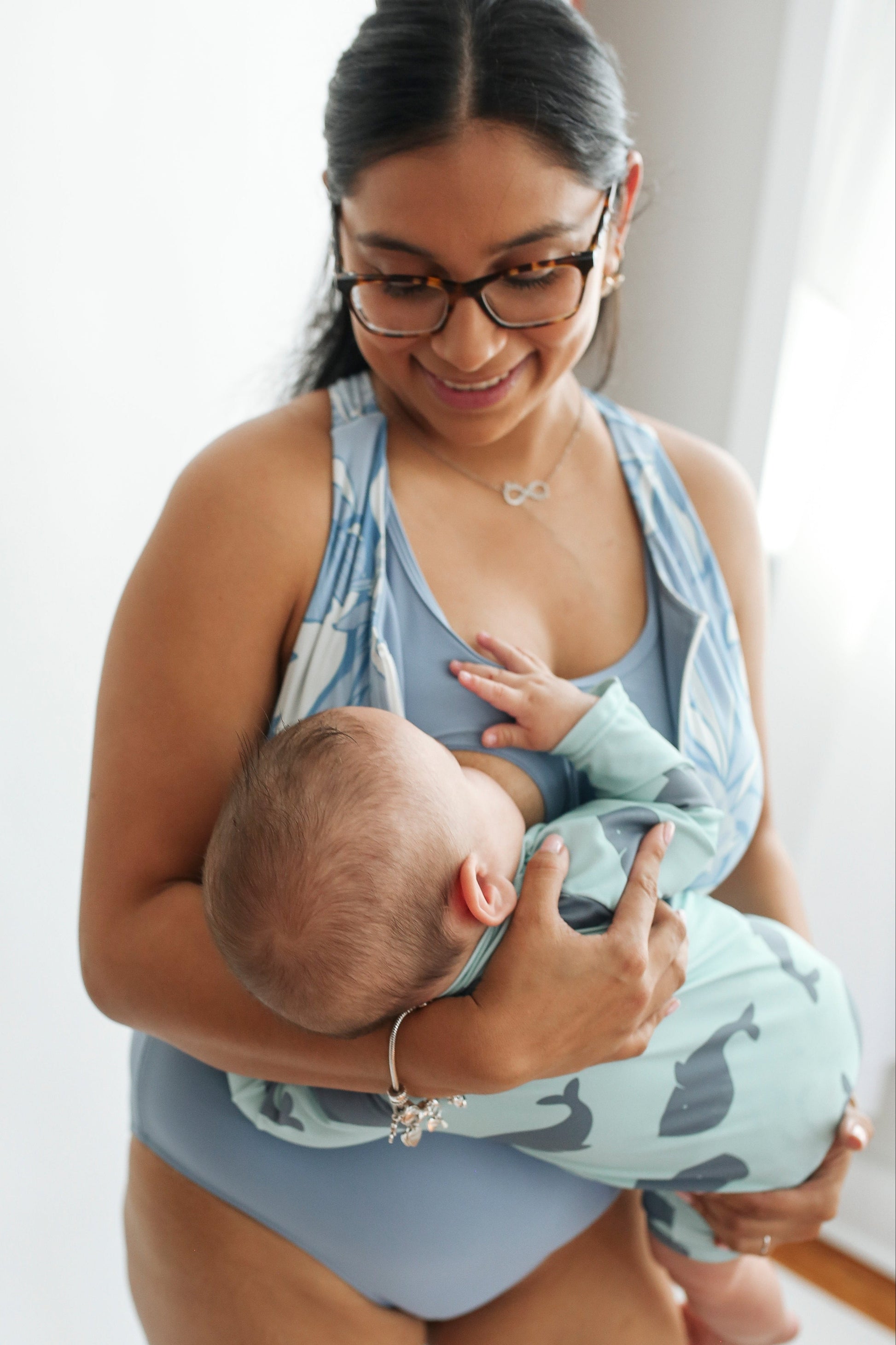 Veronica (brunette) is 5'5", wears a 32B bra and a US size 2 pants/dress and is wearing a small. Jessica (wearing a necklace & breastfeeding her baby) is 5'7", wears a 36C Bra and US Size 6/8 pants/dress and is wearing a medium. Heaven (with glasses) is wearing a size XL. She is 5'5", wears a size 14 jeans and 38DD bra. See size chart in images.