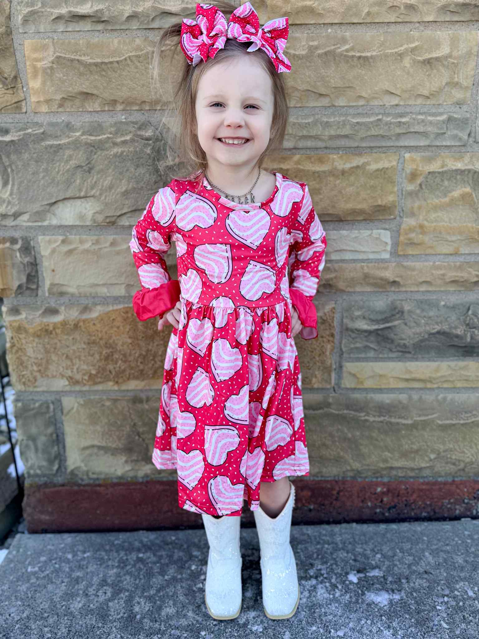 Red cakes bell sleeve dress