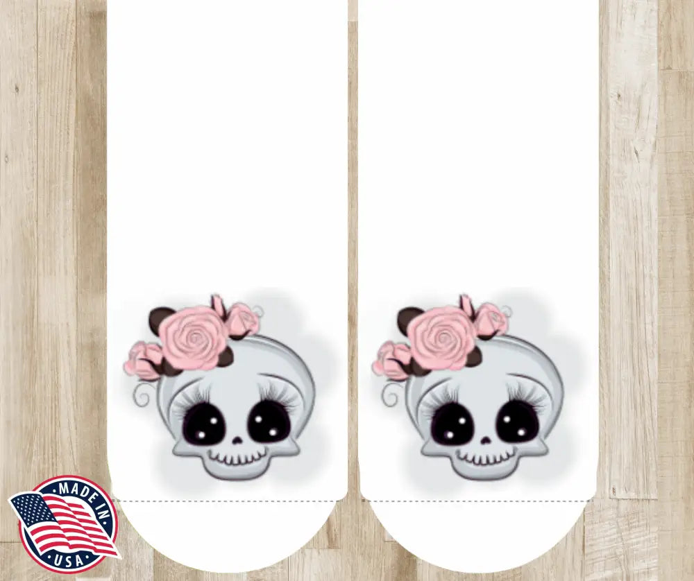 These adorable socks fit an adult size 6-12. Made from 98% Polyester, 2% Spandex. These are no show socks.