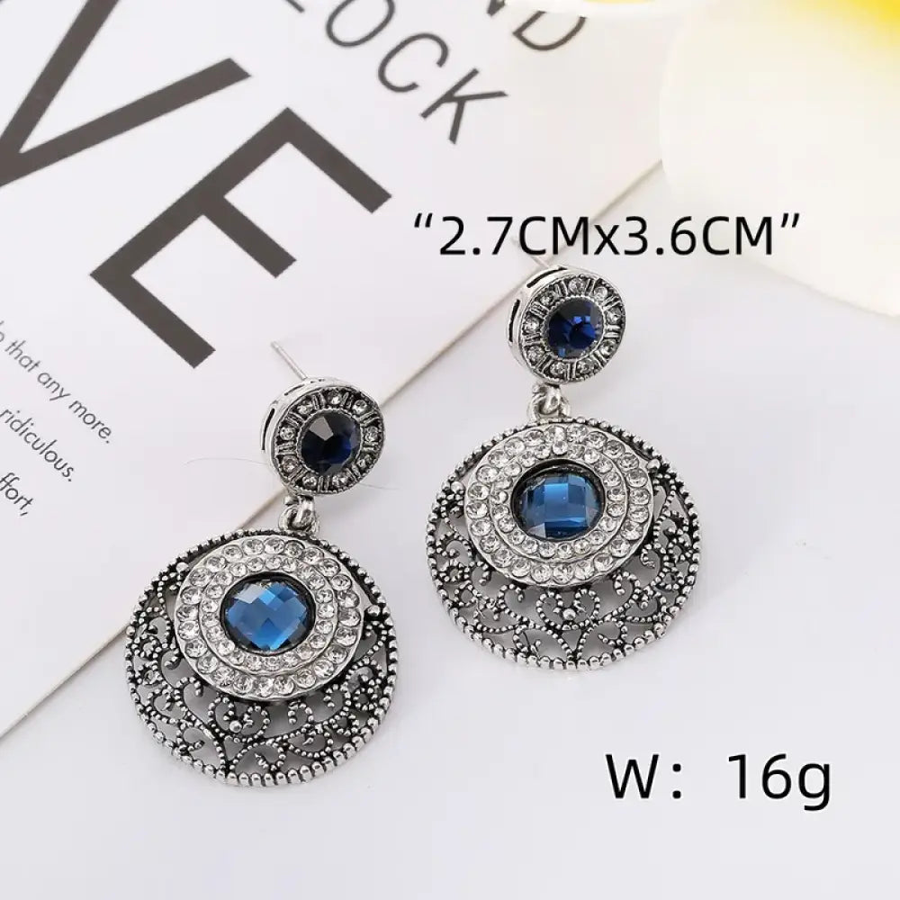 Add a touch of elegance to any outfit with Something Old, Something Blue – Blue earrings. These post earrings feature dazzling white diamonds and brilliant blue rhinestones, creating a stunning contrast that is sure to catch the eye. Perfect for special occasions or adding a touch of luxury to your everyday look. Measures 1.5"
