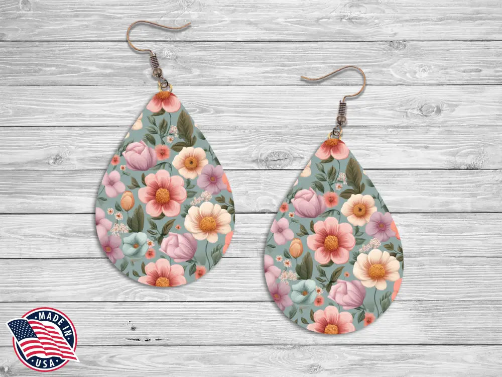 Adorable pair of earrings. Teardrop measures 1 1/4" wide x 1 3/4" long. Made with soft leather.