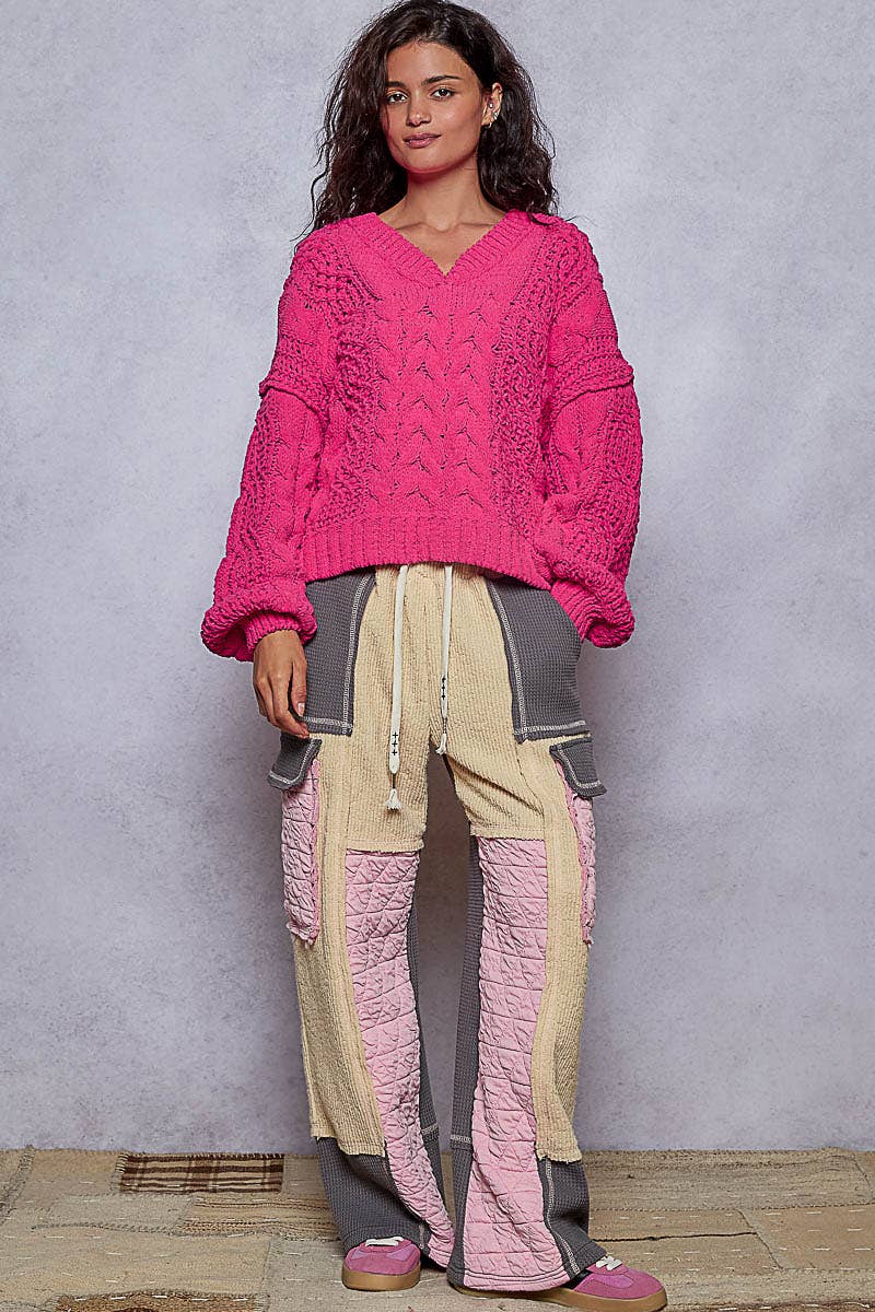 Elevate your everyday wardrobe with this charming V-neck chenille sweater from Pol Clothing. Featuring a playful balloon sleeve design and semi-cropped silhouette, this piece strikes the perfect balance between cozy and chic. The twisted knitting detail adds visual interest and texture, while the soft chenille fabric invites you to snuggle up in style. Whether you're layering over a crisp white tee or pairing with your favorite denim, this versatile top brings effortless sophistication to any outfit. The thoughtfully designed overlay V-neck flatters while keeping things fresh and modern. Specifications: Bust 26", Length 22", Sleeve 19", Shoulder 25-3/4"
