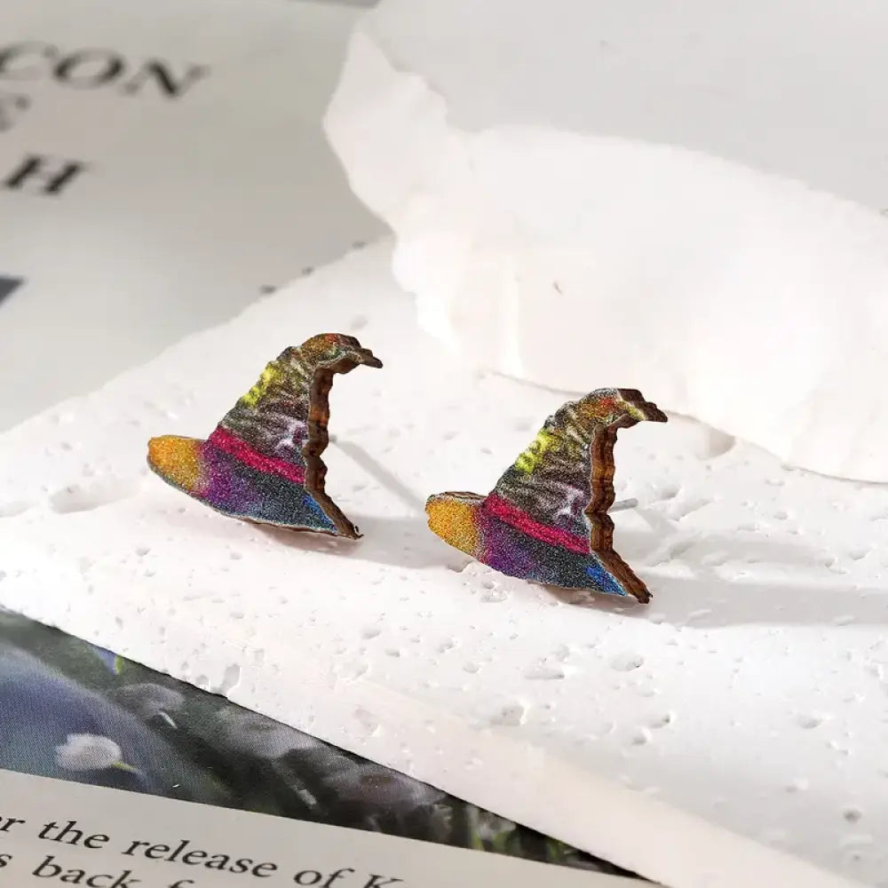 Rock some witchy vibes with our Witches Multi earrings! These wooden post earrings feature adorable witch hat charms for a playful and quirky touch to any outfit. Perfect for anyone who loves to express their unique style with a touch of magic! Measures .5"