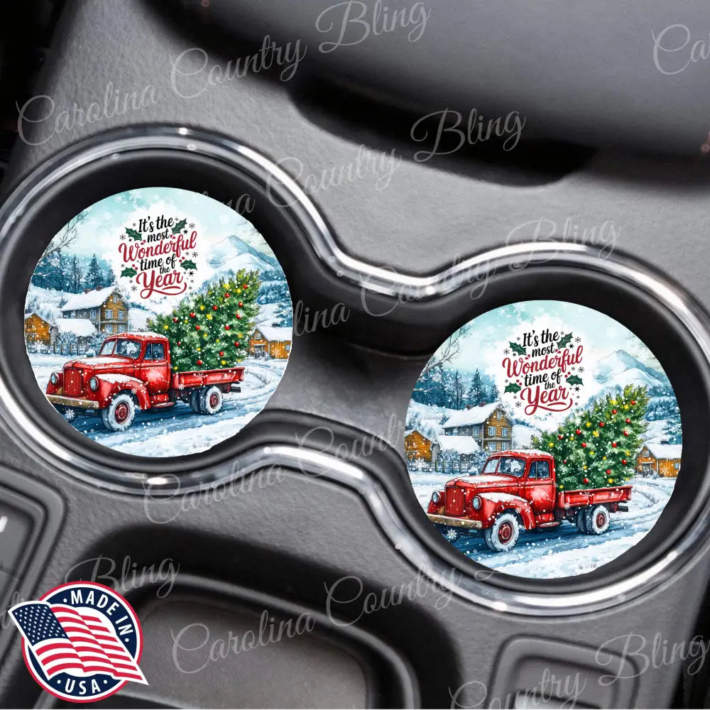 Sold as set of two car coasters.