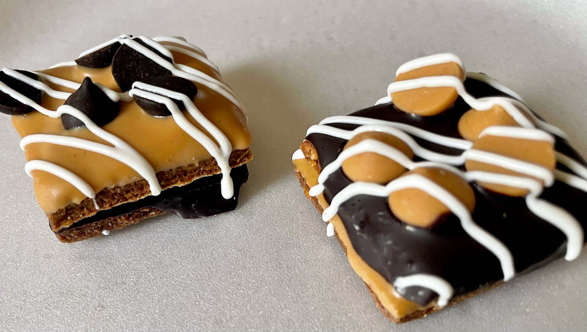 Decadent peanut butter chip & carob chip truffles are as beautiful as delicious! Pup will drool over these double decker treats!